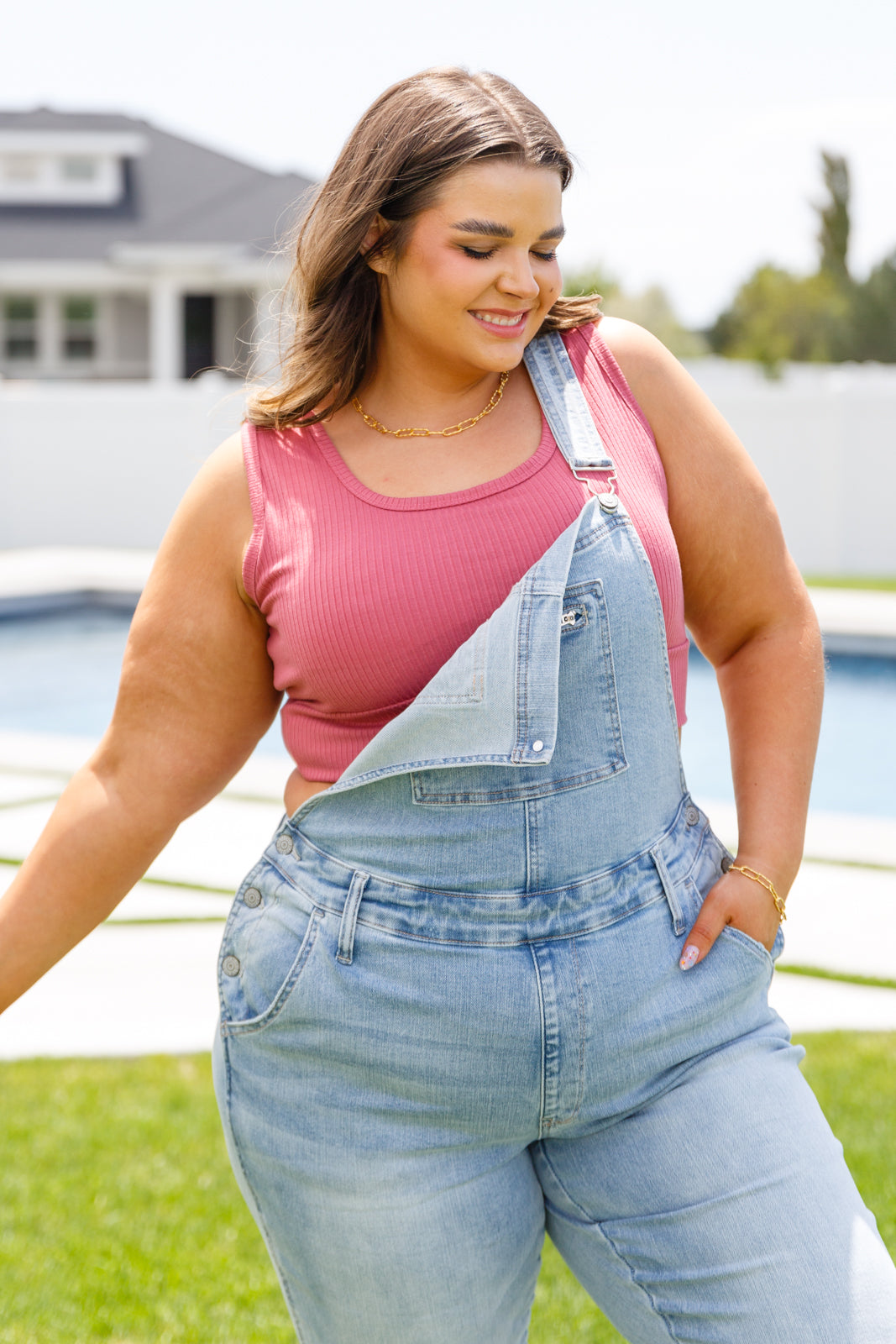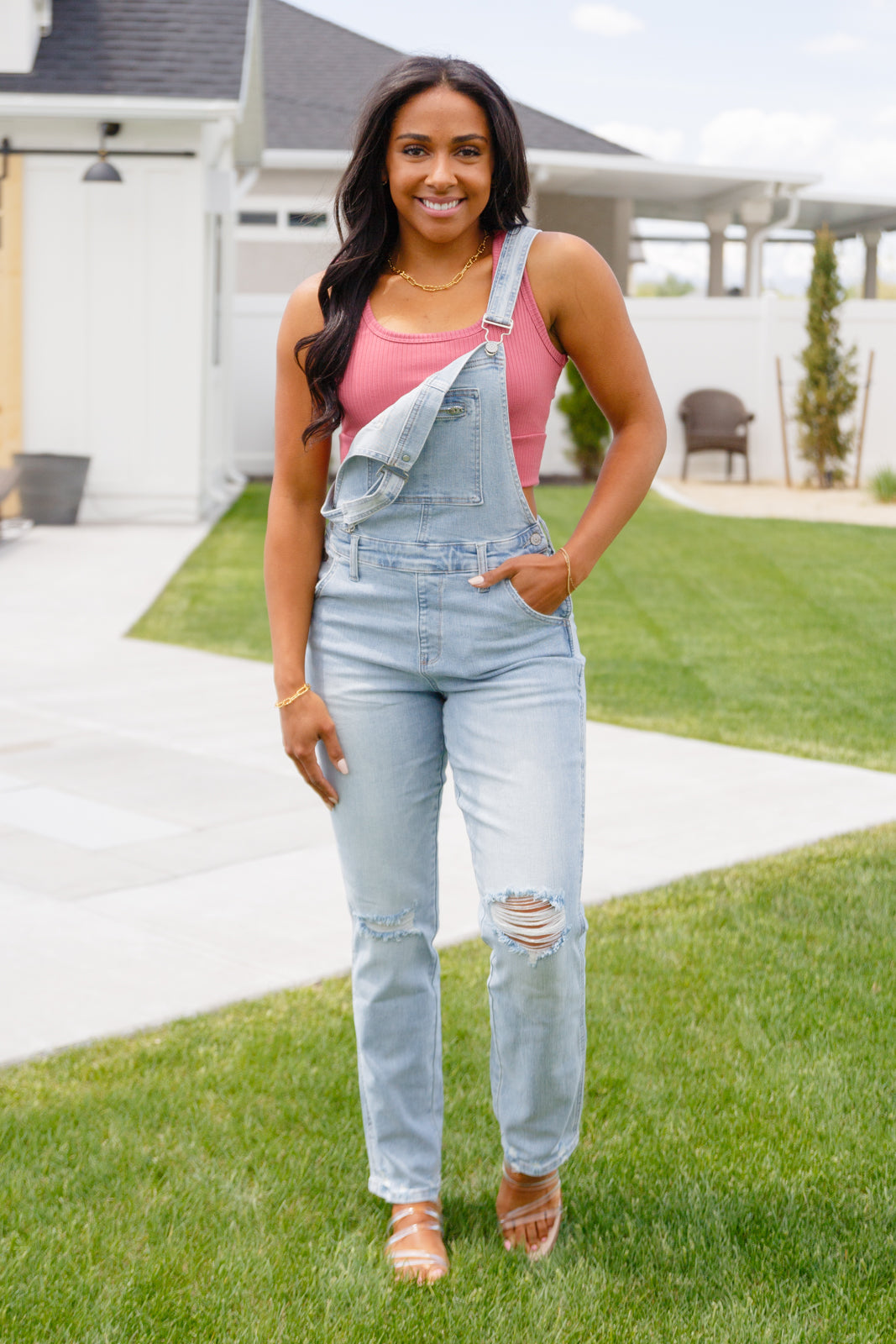 - Annabelle Distressed Straight Leg Overalls