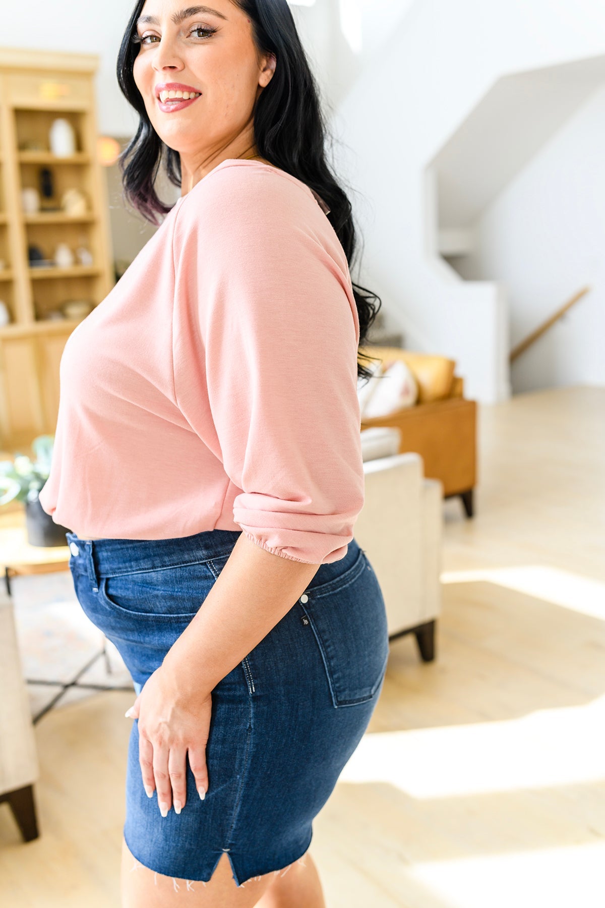 The Don't Go Yet Top was made for maximum comfort and style! The elasticated cuffs and waistband combined with the three quarter balloon sleeves, round neckline, and soft jersey fabric make for the perfect go to top! Pair with denim and pumps for a chic look!