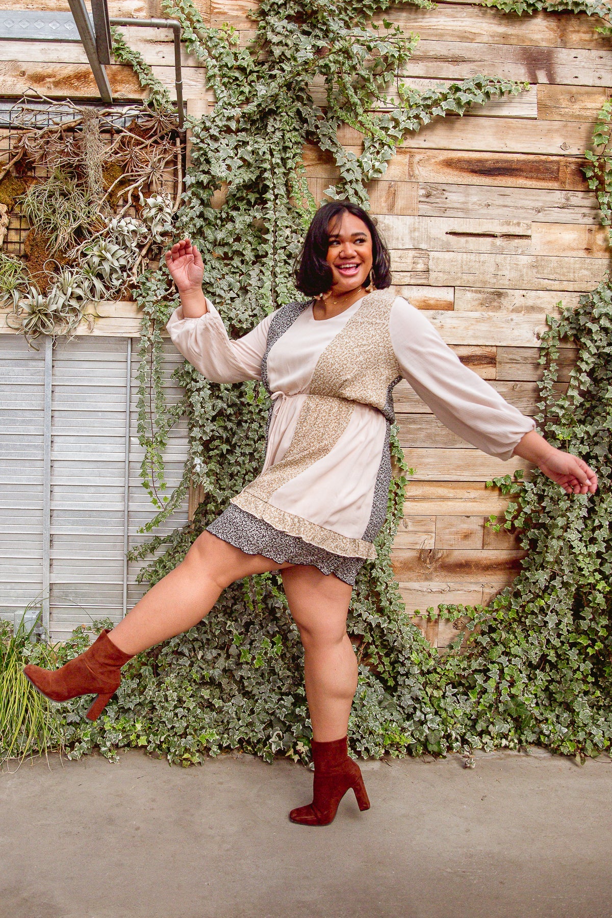 Keywords: Floral, Dress, Tan, Black, Ruffle
