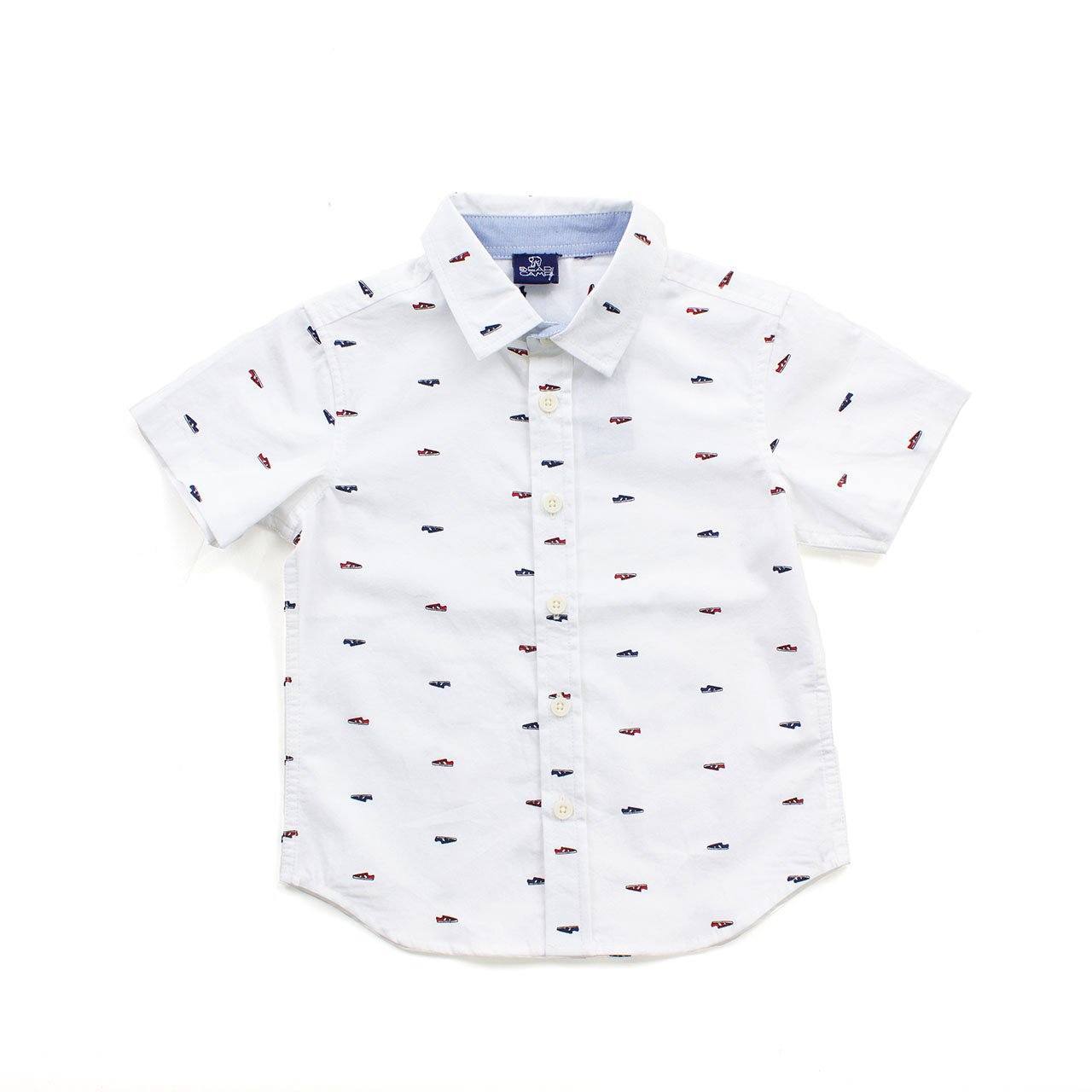 Your son's new favorite button down with the fun all over shoe print! So light weight and comfortable that he will be begging to wear it again and again!